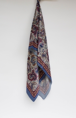 Mavi Vera Etnik Desen Saten Şal