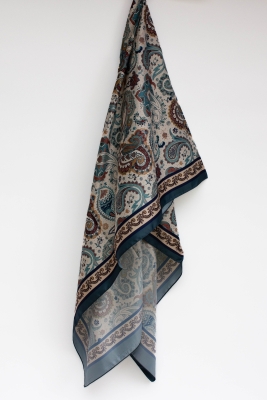 Petrol Mavisi Vera Etnik Desen Saten Şal