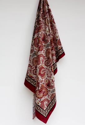 Bordo Fırça Desen Saten Şal