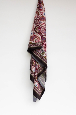 Siyah-Bordo Vera Etnik Desen Saten Şal