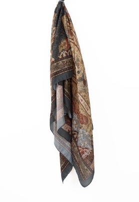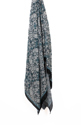 Koyu Gri Jardin Desen Lina Şal