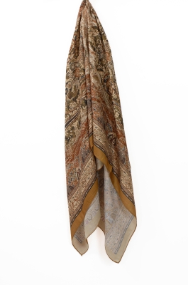 Hardal Mila Etnik Desen Soft Şal